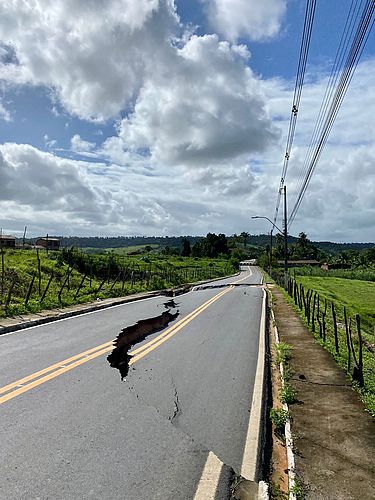 Asfalto cede e rachaduras interditam via em São Miguel dos Campos; veja