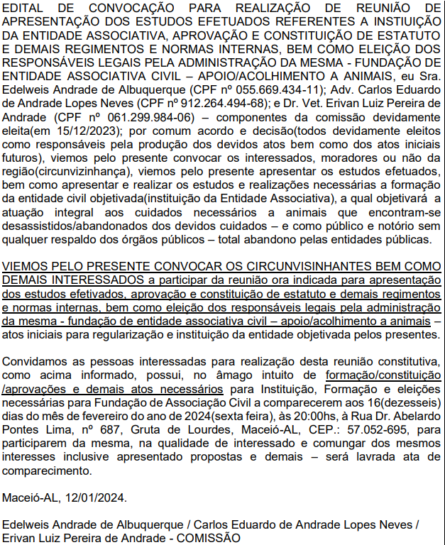 2° PUBLICAÇÃO EDITAL ONG – APOIO/ACOLHIMENTO A ANIMAIS