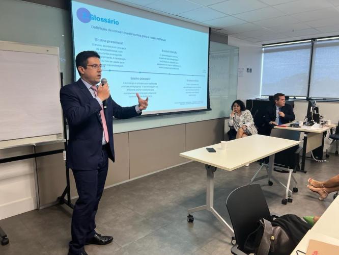 Estiveram presentes a Coordenadora Pedagógica da ECPCJAM, Gisete Lima e o Diretor Técnico, José Marçal de Aranha Falcão Filho, que realizou apresentação aos participantes sobre metodologias ativas.