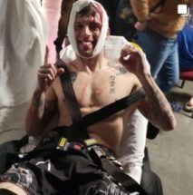 “O oponente tinha um estrangulamento justo e quando eles bateram na grade, a cabeça do Hunter atingiu a porta do cage e isso abriu um corte de 20 centímetros a começar pela linha de seu cabelo”, descreveu o treinador. Esta foi a quarta apresentação do peso-pena (66 kg) no MMA amador, e seu cartel atual é de duas vitórias e duas derrotas, de acordo com o site especializado ‘Sherdog’.