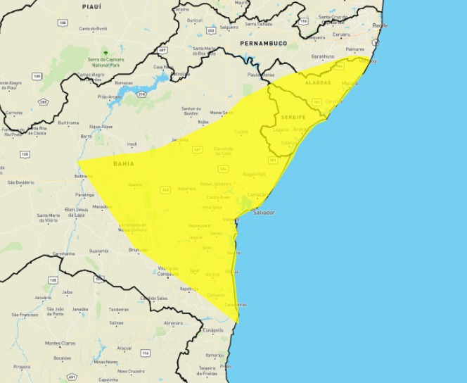 Veja, abaixo, os municípios alagoanos que estão inseridos no alerta amarelo divulgado pelo Inmet.
