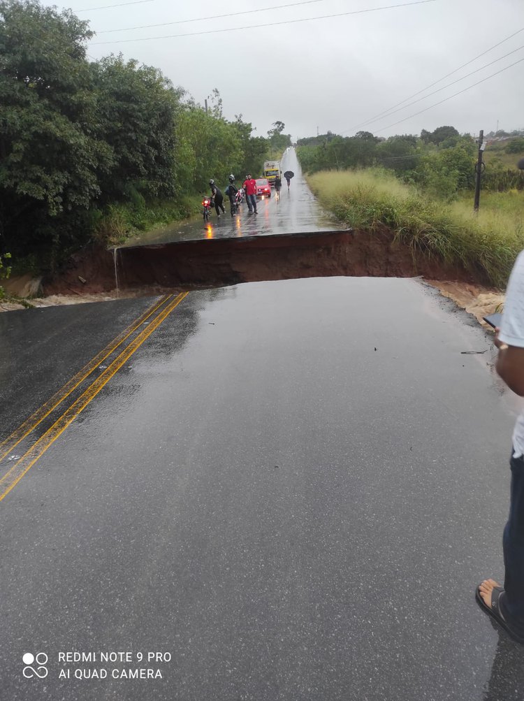Um trecho da AL-485, entre os município de Feira Grande e Arapiraca, ficou interditado nesta sexta-feira (3). Uma parte da ponte cedeu após as fortes chuvas que atingem a região. Não há informações sobre feridos.
