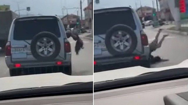 Durante o trajeto, a “dançarina” acabou se desequilibrando e caindo de cabeça na pista. Alguns motoristas pararam para socorrer a jovem, mas ela se levantou e correu de volta para o SUV. Assista abaixo: