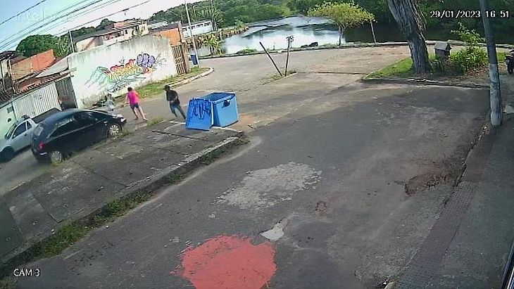 Nas imagens, é possível ver que crianças brincam na rua quando a movimentação de veículos chama atenção dos presentes. Alguns pais correm para pegar os filhos e um dos meninos, que tinha atravessado a rua para pegar uma bola, fica no meio da via.